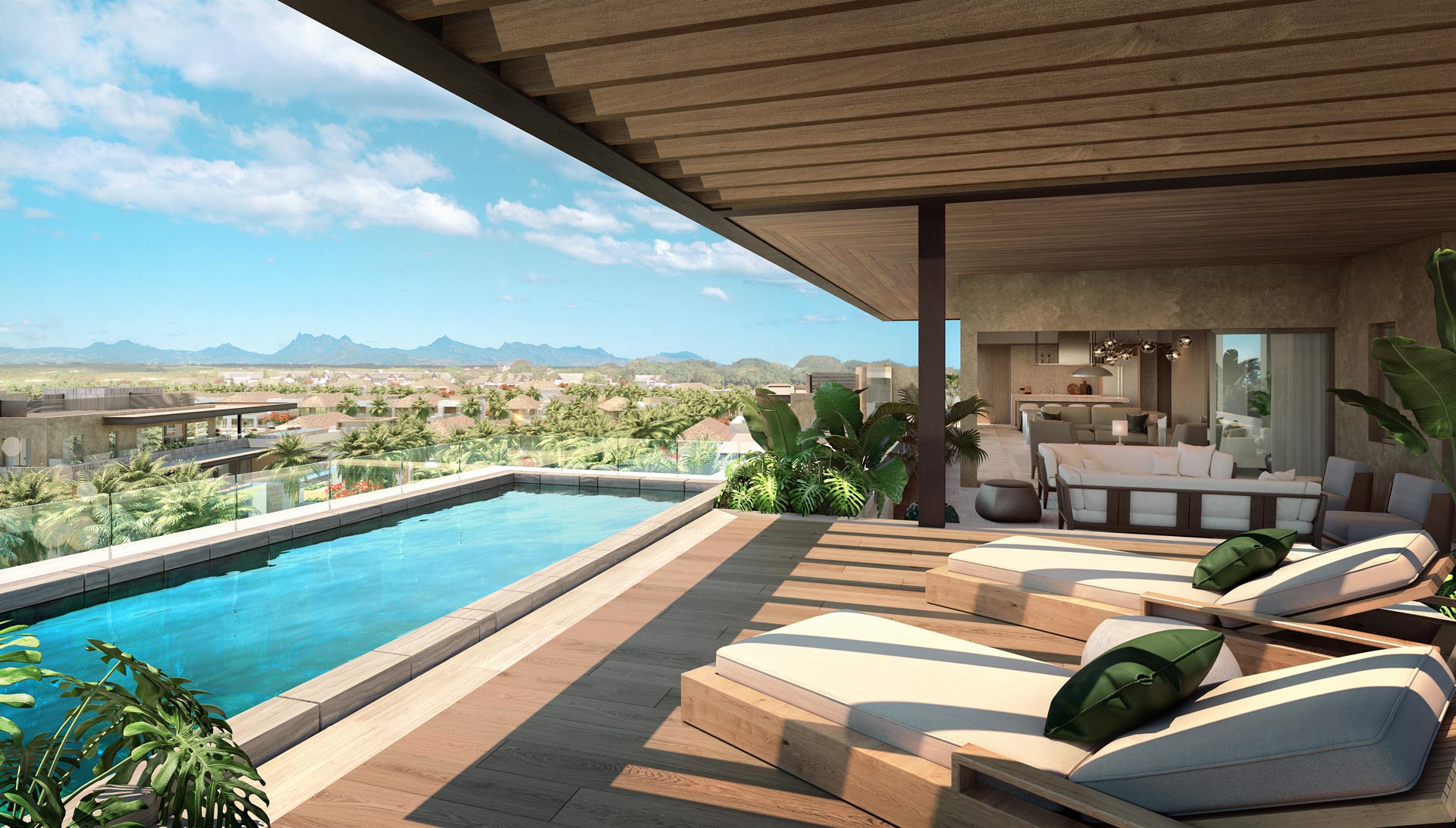 Offrant de vastes espaces de vie et une vue panoramique sur Grand-Baie et sur l’océan, ces penthouses de 4 chambres superbement équipés proposent de nombreuses options sur mesure. Leurs pièces lumineuses et aérées surplombent des panoramas spectaculaires, tandis que les salles de séjour s’ouvrent sur une large terrasse avec une piscine à couper le souffle.